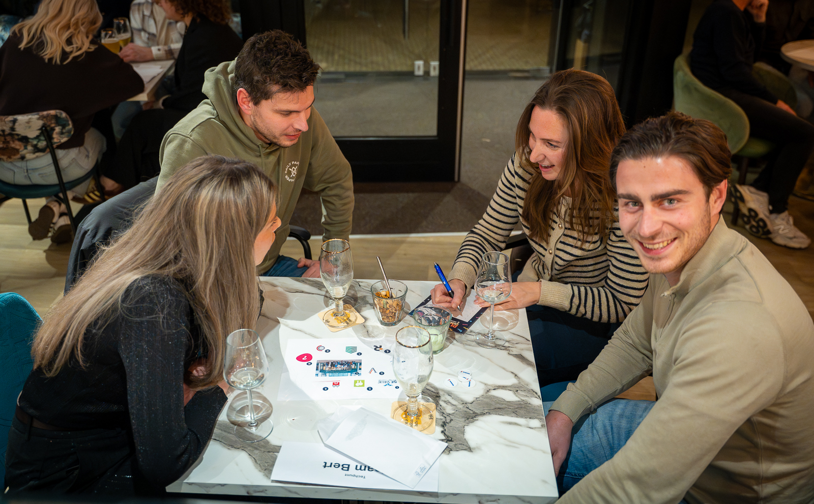 De Rozerie bleek een uitstekende keuze als locatie. Met enthousiaste bediening, borrelplanken en drankjes werden alle teams de hele avond perfect verzorgd.