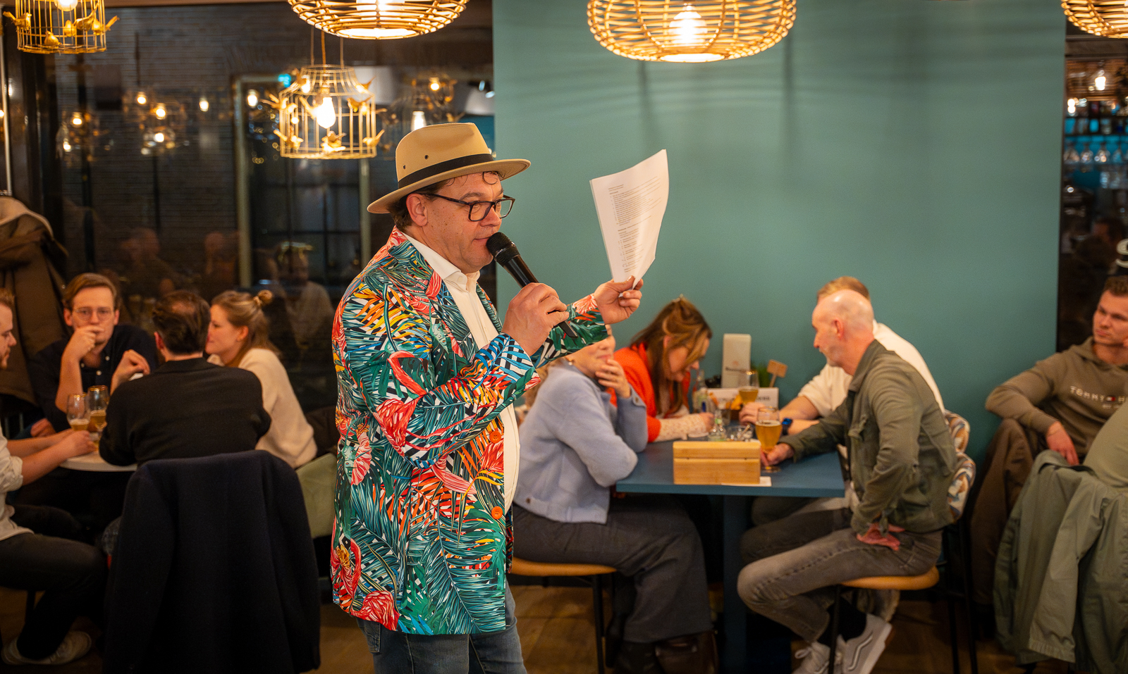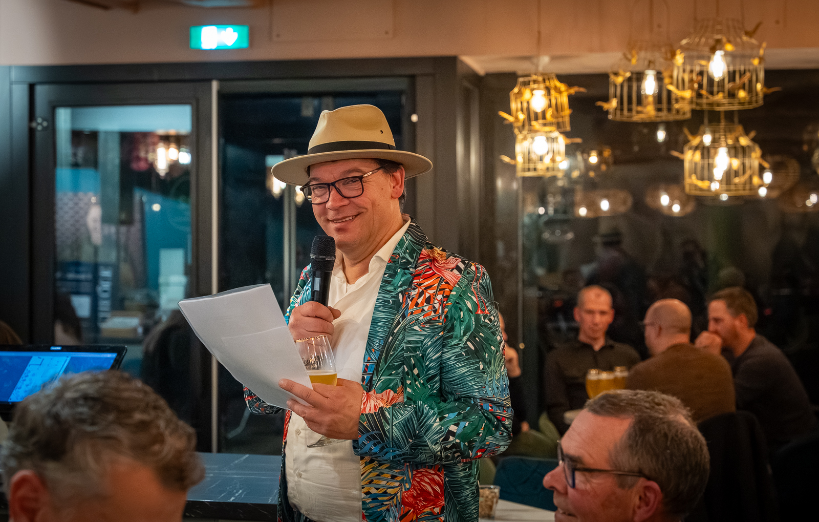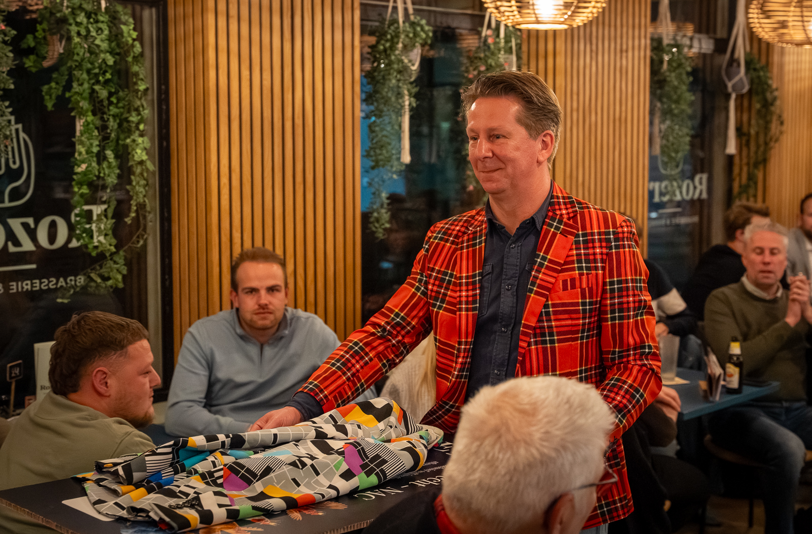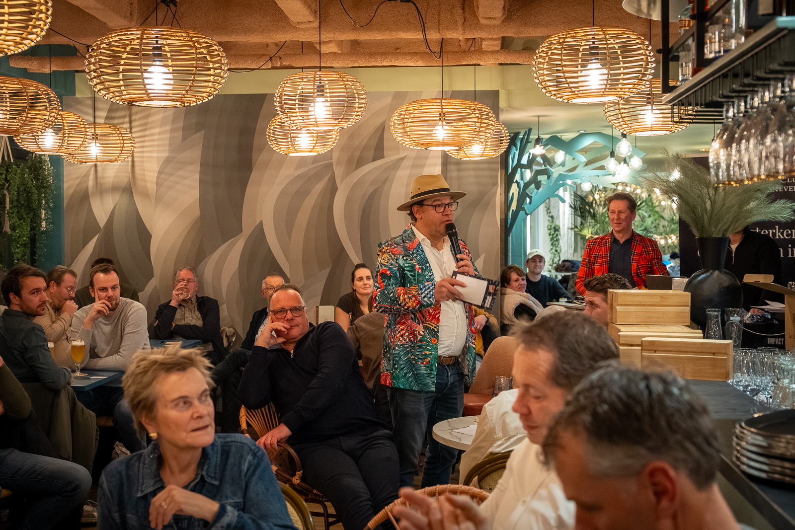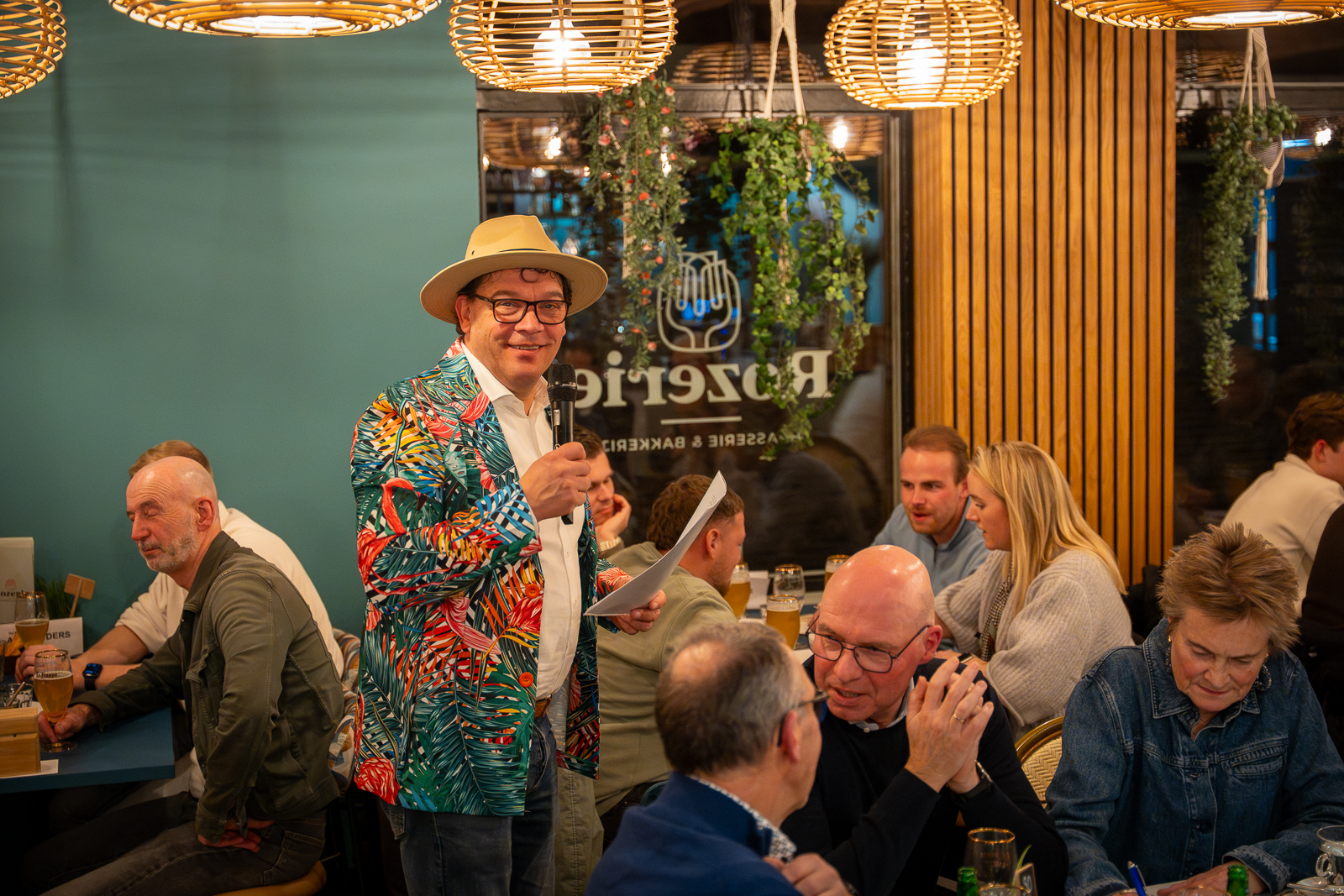 Om 19:00 uur stroomde de zaal vol met ondernemers die zich voorbereidden op de intellectuele uitdaging. Na de opening door Marcel Wijnen en een welkomstwoord van Jan-Henk Janssen (Rozelaar), legde quizmaster Pieter Pietersen van Pon Center Barneveld de spelregels uit: zeven rondes, telefoons betekenen directe diskwalificatie én de quizmaster heeft altijd gelijk. In ieder geval vanavond dan.