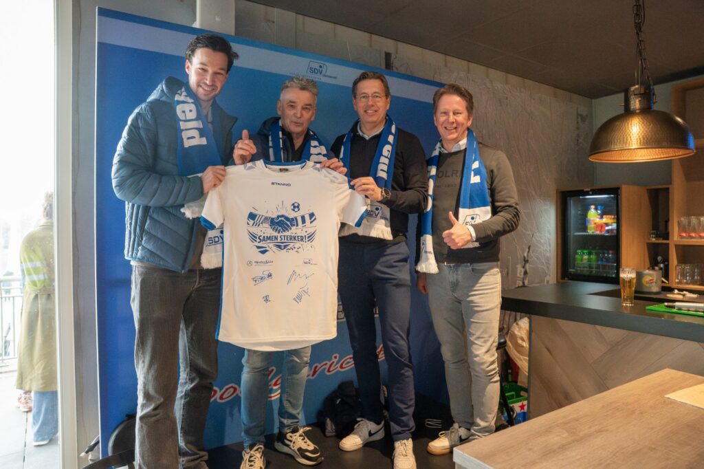 Afgelopen zaterdag werd op feestelijke wijze de samenwerking tussen SDVB en Rijnders Sport verlengd. Een moment dat niet alleen de continuïteit van een mooie lokale samenwerking bevestigt, maar ook een persoonlijk tintje kreeg: Fred en Anneke Rijnders brachten het nieuws dat hun zoon Thom Rijnders voortaan deel uitmaakt van de zaak. Een echte familiezaak dus!